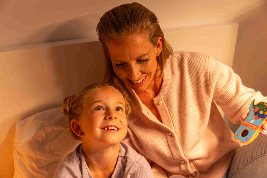 Sanftes Licht, Nähe, Fantasie: Kinder entspannen, Eltern atmen auf. Ein Moment Verbindung, ohne performen zu müssen.