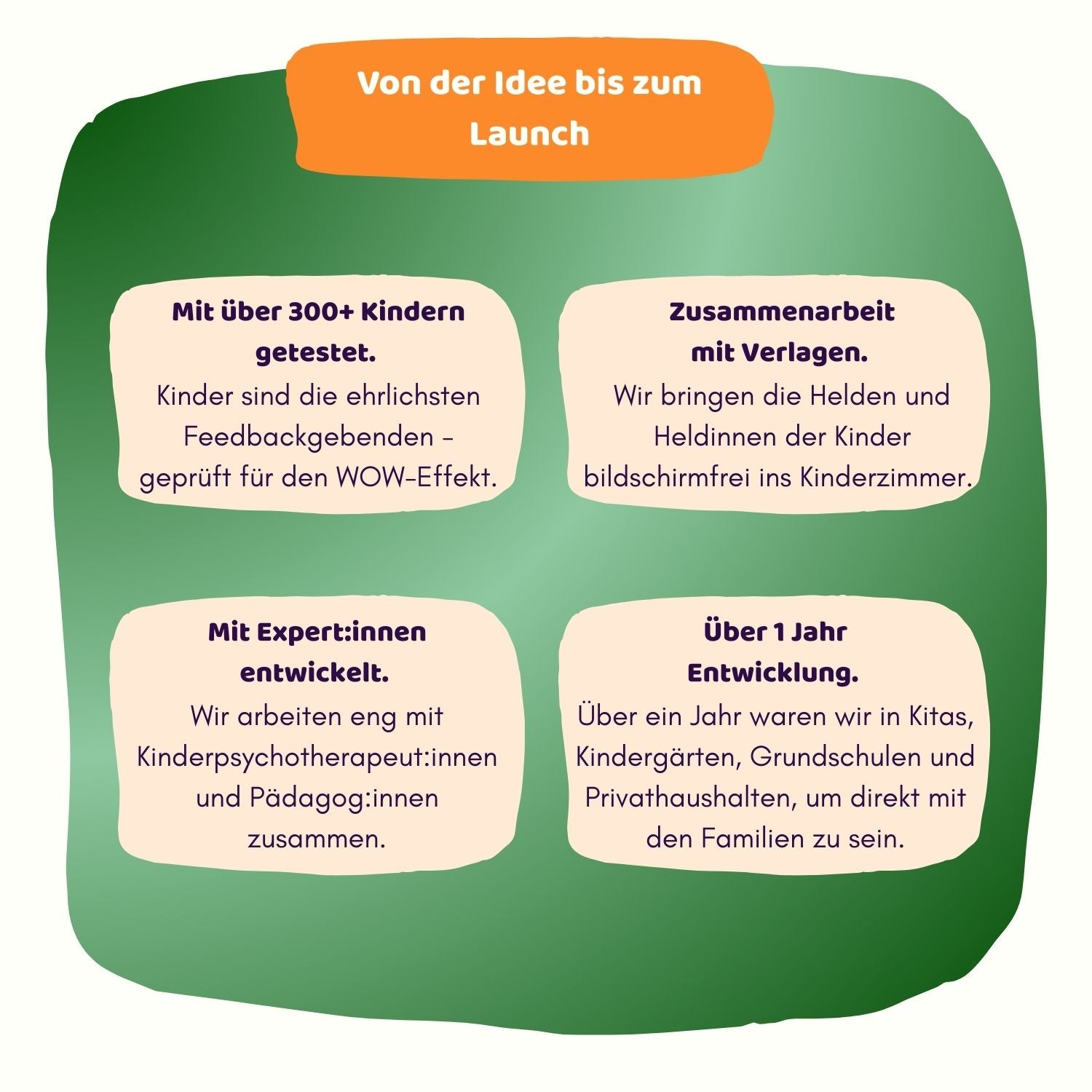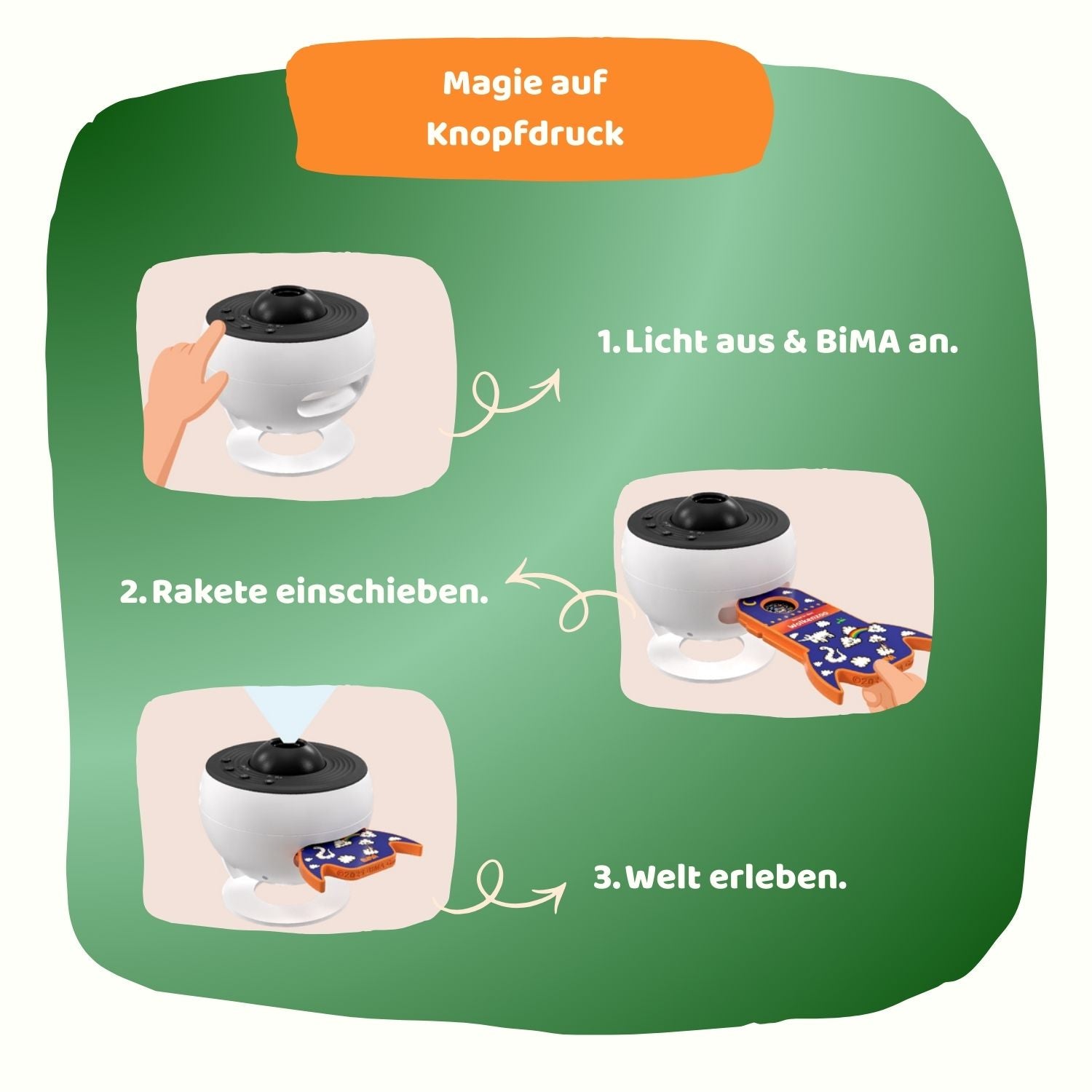 In einer Welt, in der es ständig Input gibt, gibt es selten Augenblicke, in denen wir ganz bei uns sind - vor allem mit unseren Kindern. Mit BiMA wird jeder Abend zur Reise in eine Fantasiewelt. Mit jeder BiMA Rakete taucht ihr gemeinsam in neue Welten ein - ganz ohne Bildschirm und im eigenen Kinderzimmer.