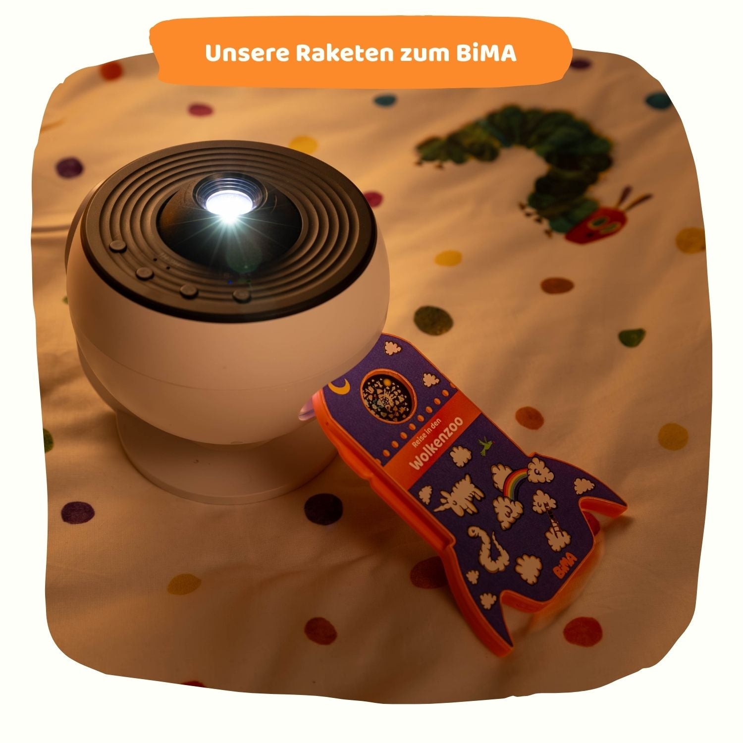 Der BiMA Projektor und die physischen Raketen als solche sind nicht für Kinder unter 36 Monaten geeignet. Kleine Teile. Erstickungsgefahr.