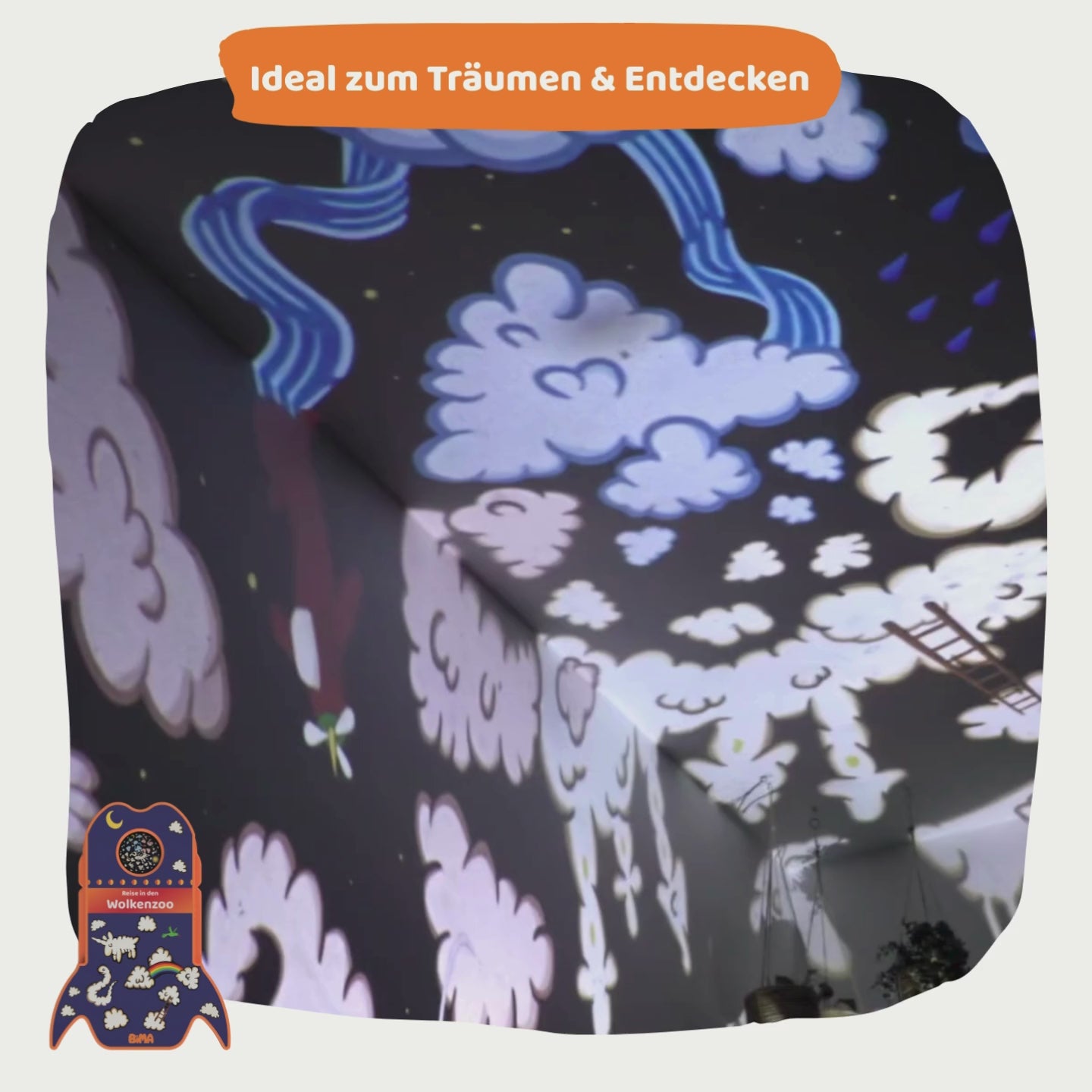 Schiebe die Rakete ganz einfach in den Projektor und erlebe die visuelle Fantasiewelt im Kinderzimmer.